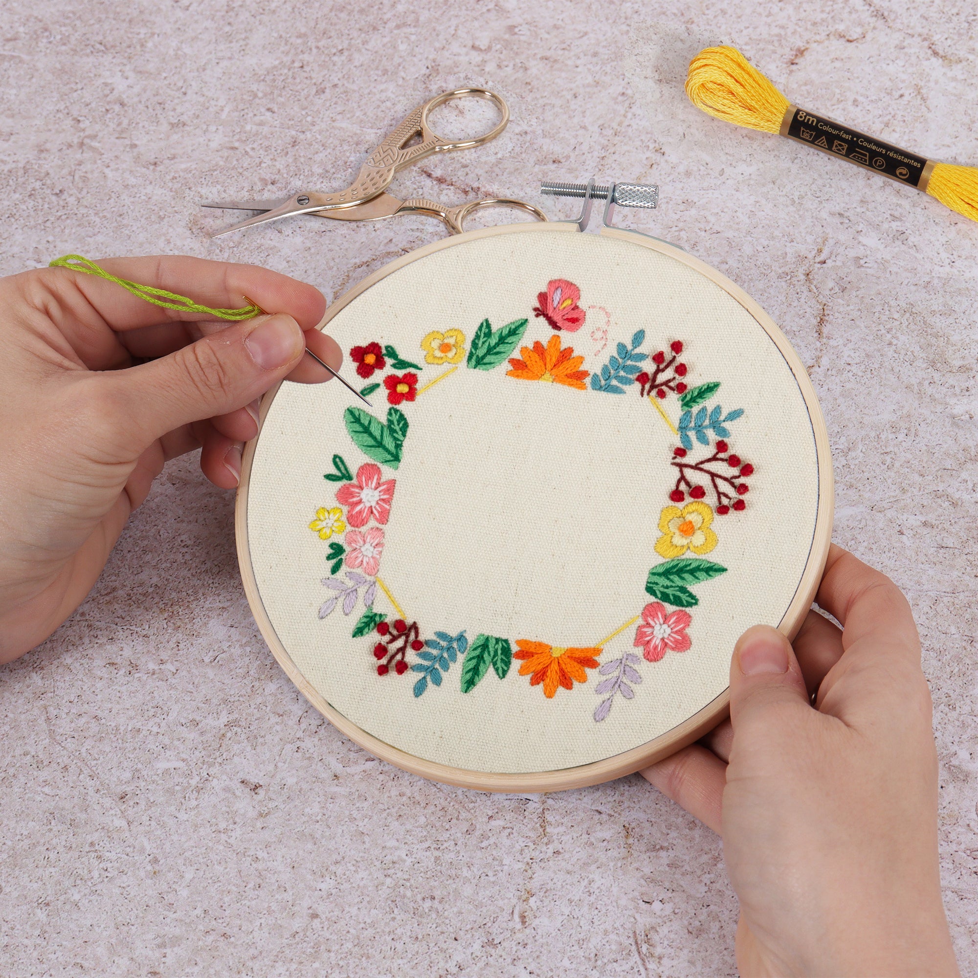 ערכת רקמה עם חישוק – מסגרת פרחונית לתמונה